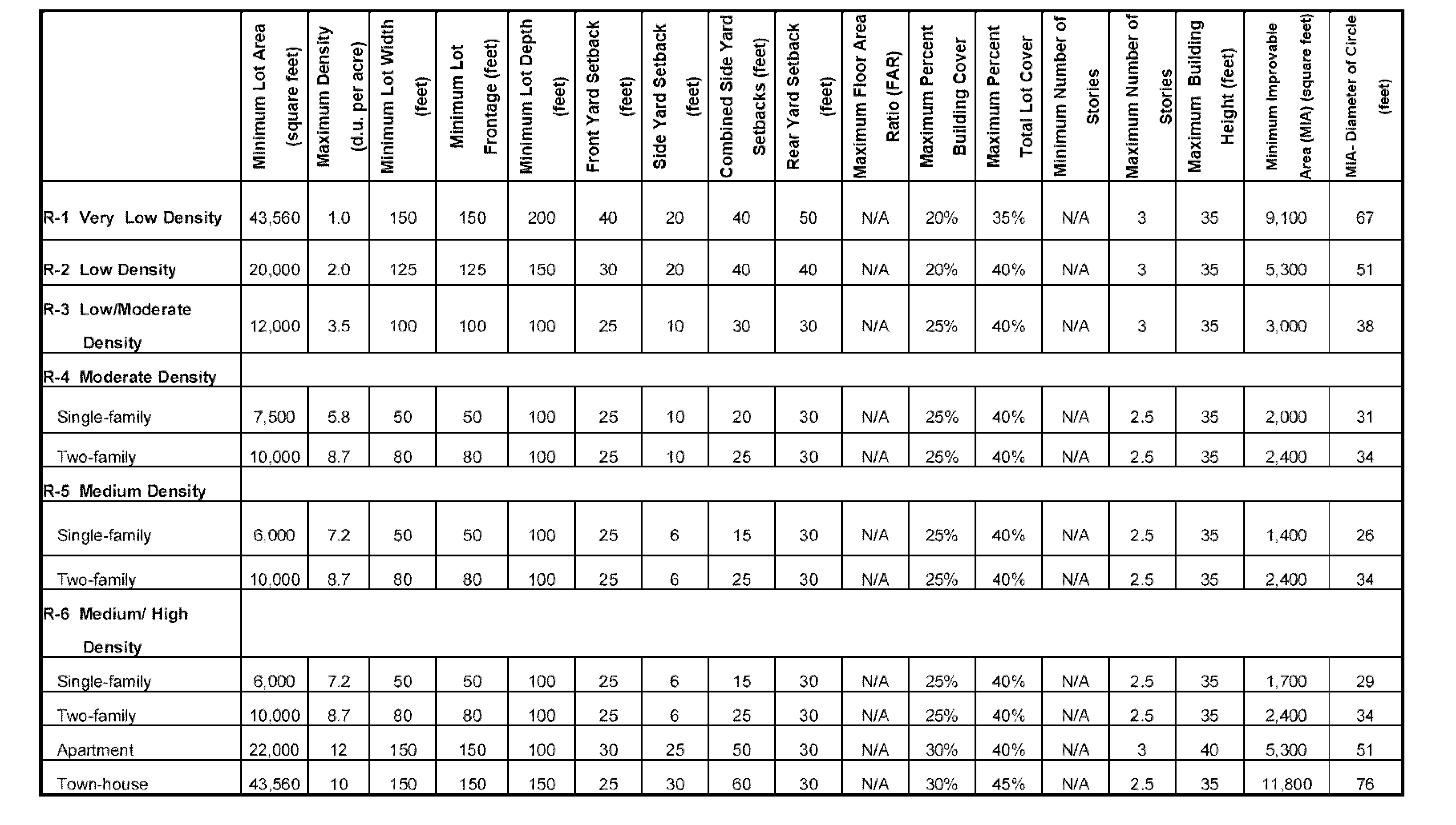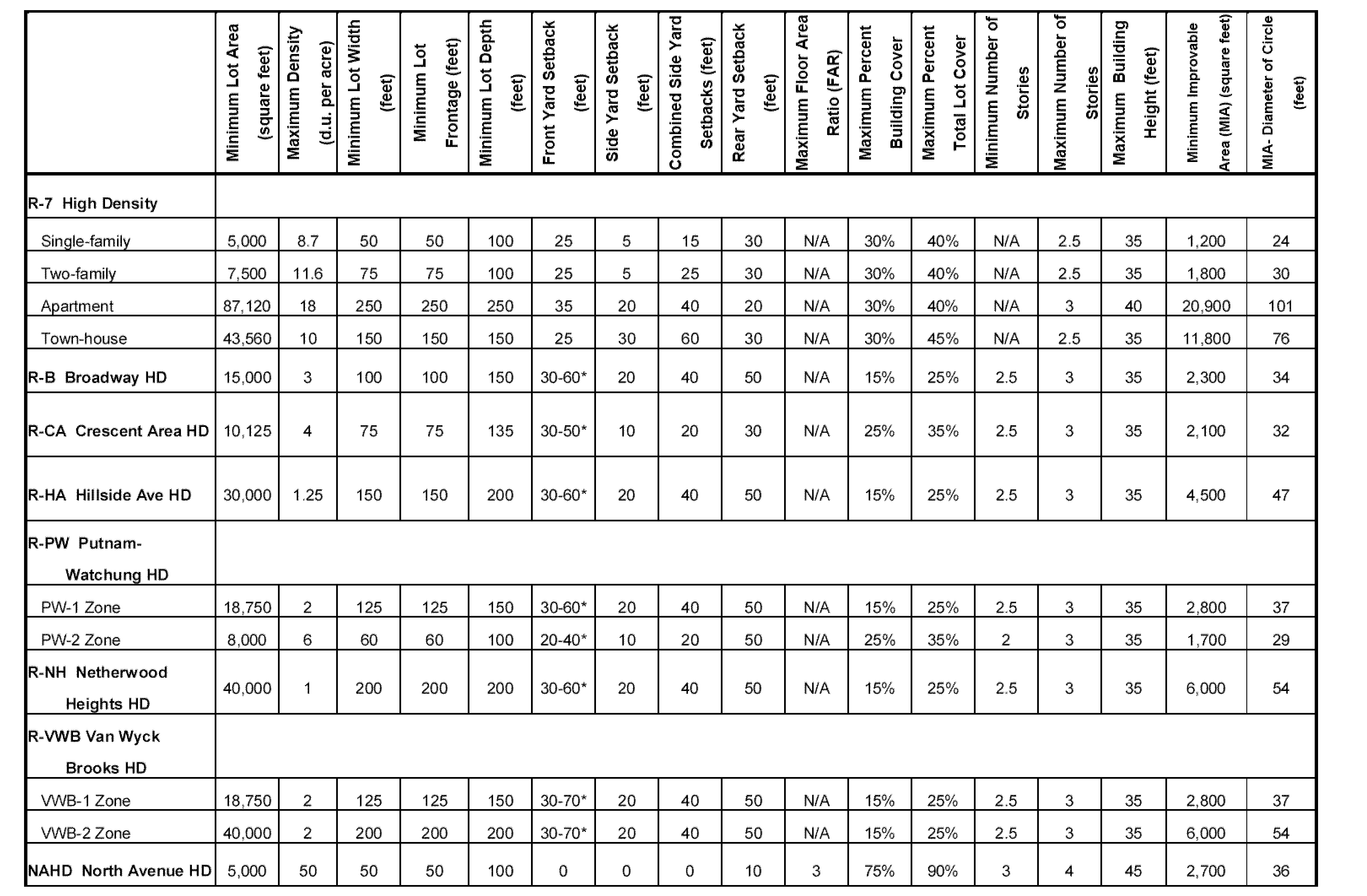 SCHEDULE B CITY OF PLAINFIELD BULK ZONING REQUIREMENTS