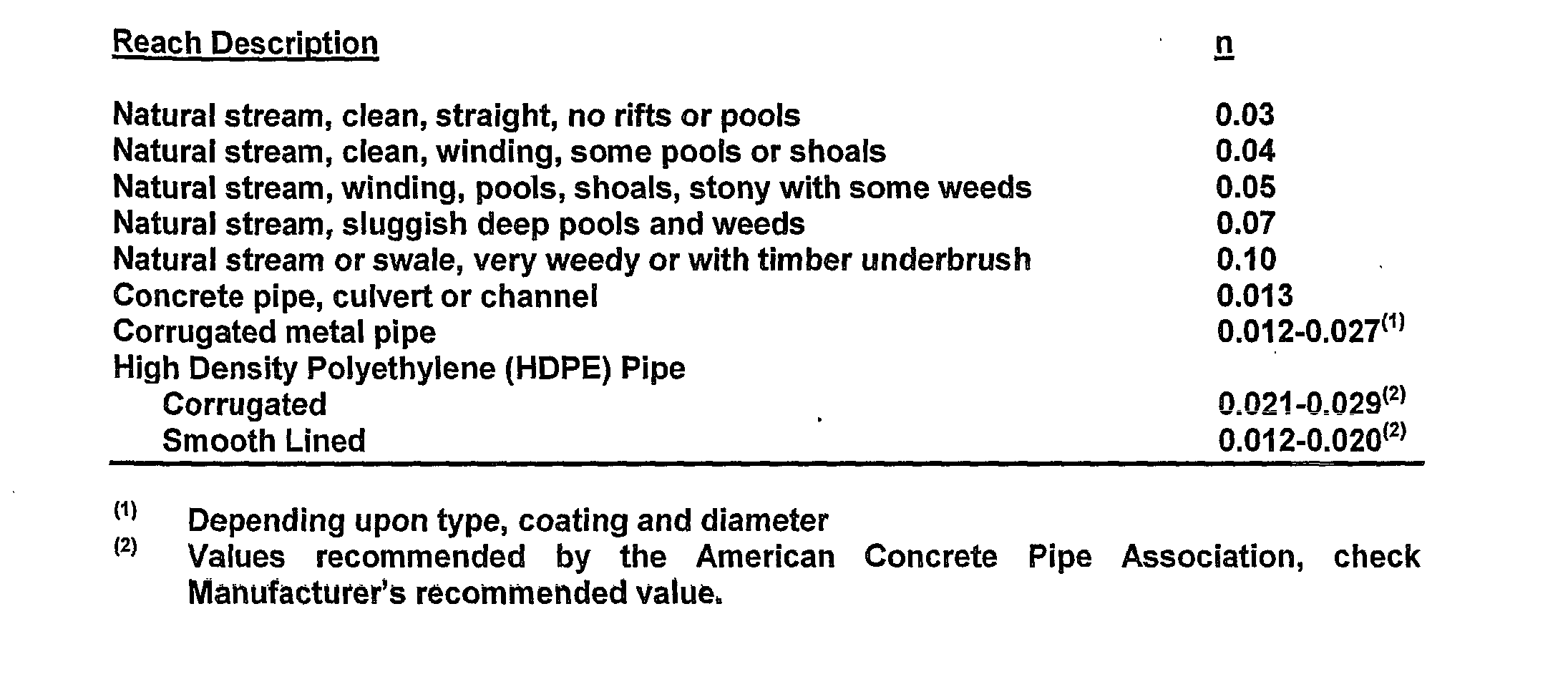 TABLE A.4 Roughness Coefficients (Manning's "n") For Channel Flow