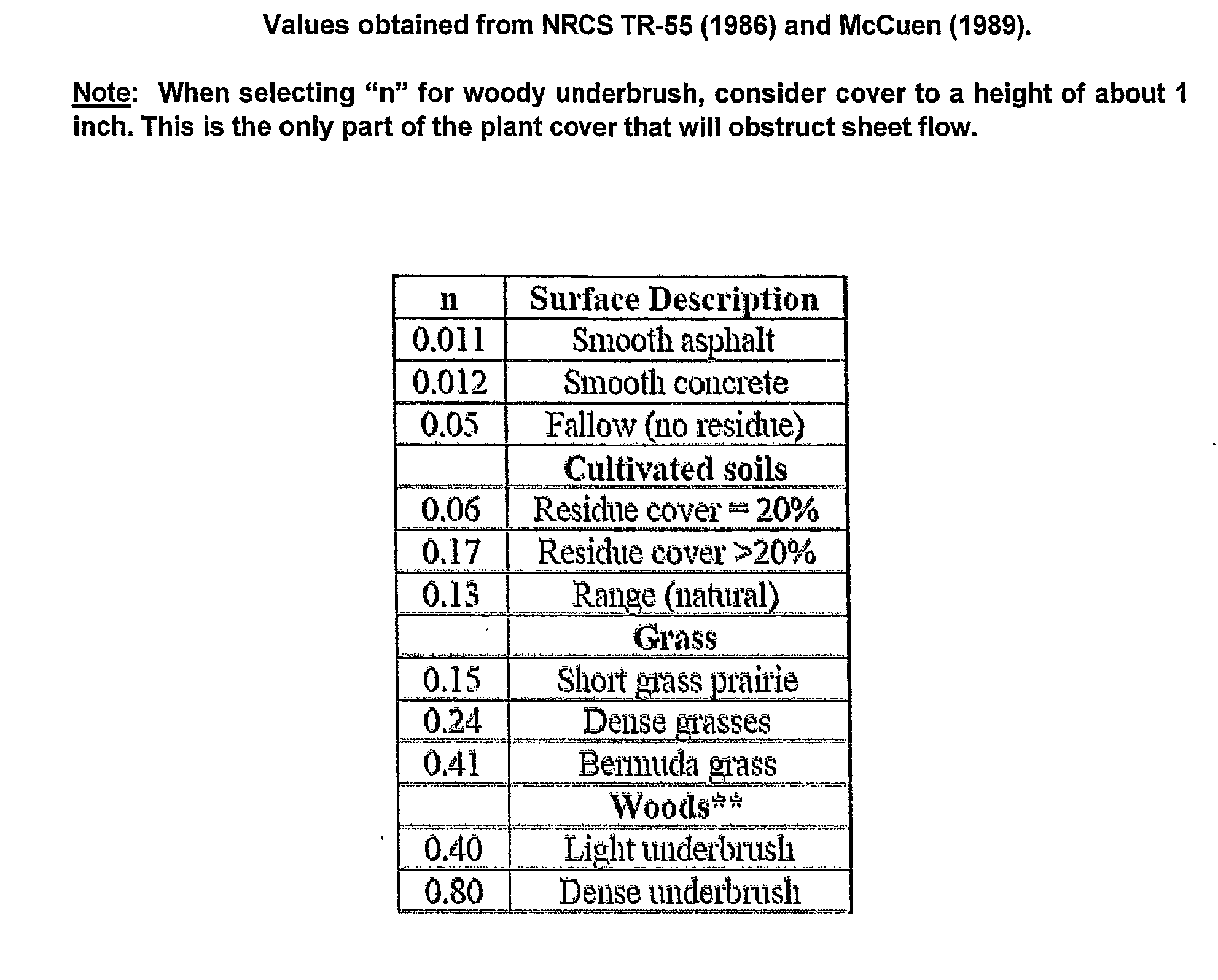 TABLE A-5 Roughness Coefficients (Manning's "n") For Overland Sheet Flow