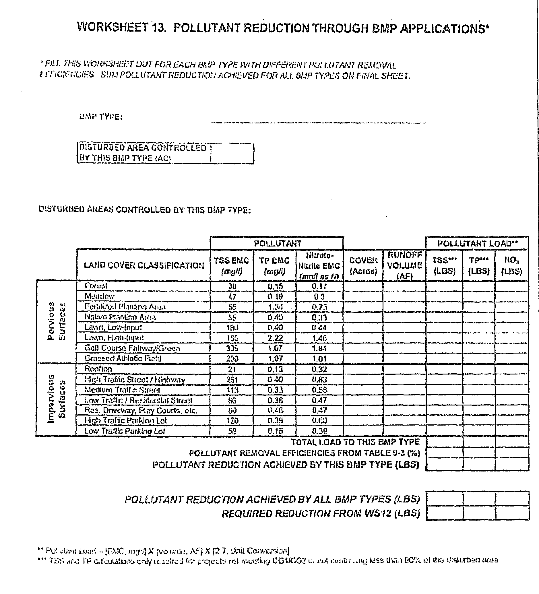 WORKSHEET 13. POLLUTANT REDUCTION THROUGH BMP APPLICATIONS*